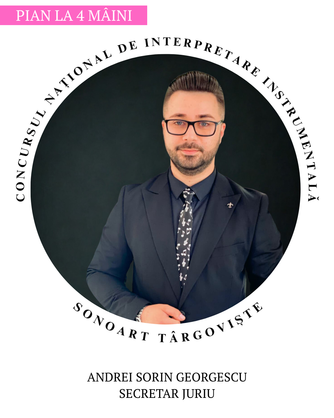 ✨ Prezența lui Georgescu Andrei Sorin în juriul concursului în calitate de Secretar aduce o perspectivă tânără, exigentă și profund conectată la realitățile actuale ale formării muzicale, dublată de rigoare profesională și respect față de actul interpretativ.